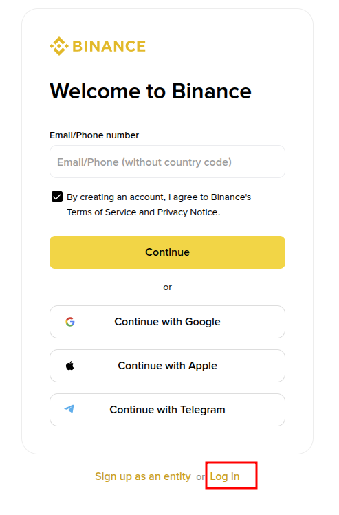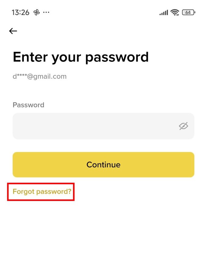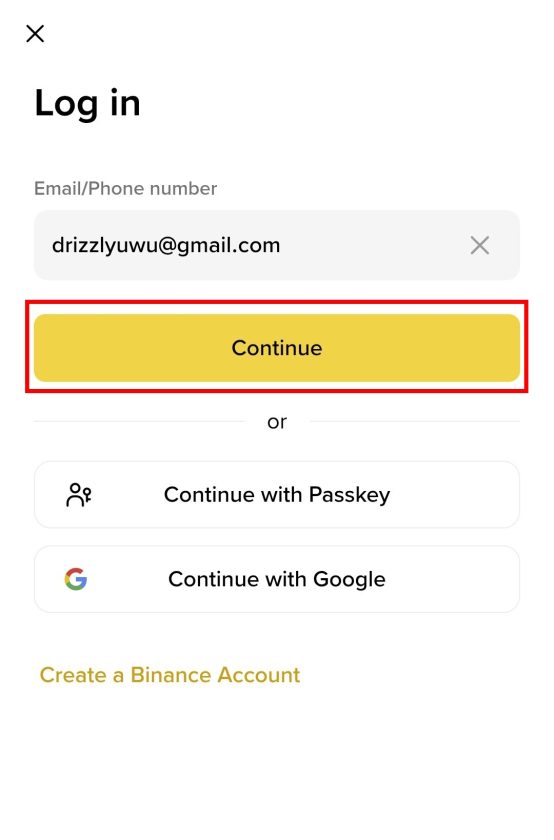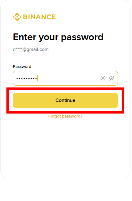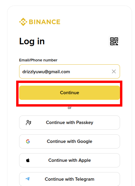 Binance will ask you to enter the email address or mobile number associated with your account.