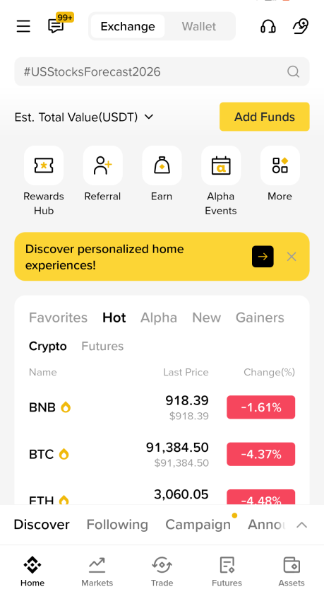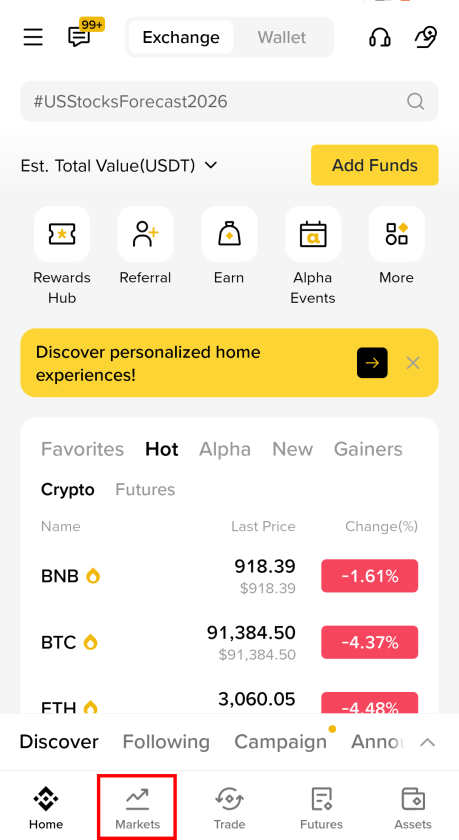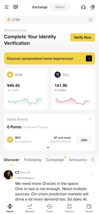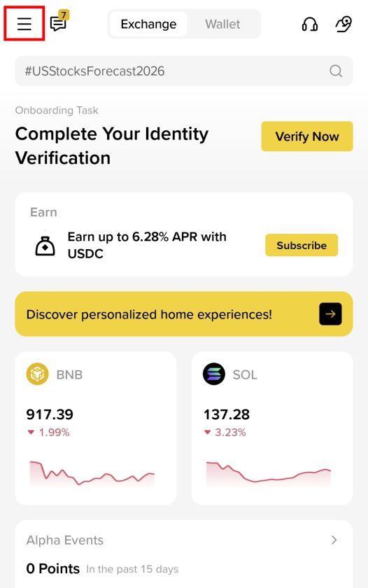 Tap and open the binance app from your homescreen or app drawer. You’ll reach the home tab. Make sure you’re logged in to the app. You can try Login from this article.