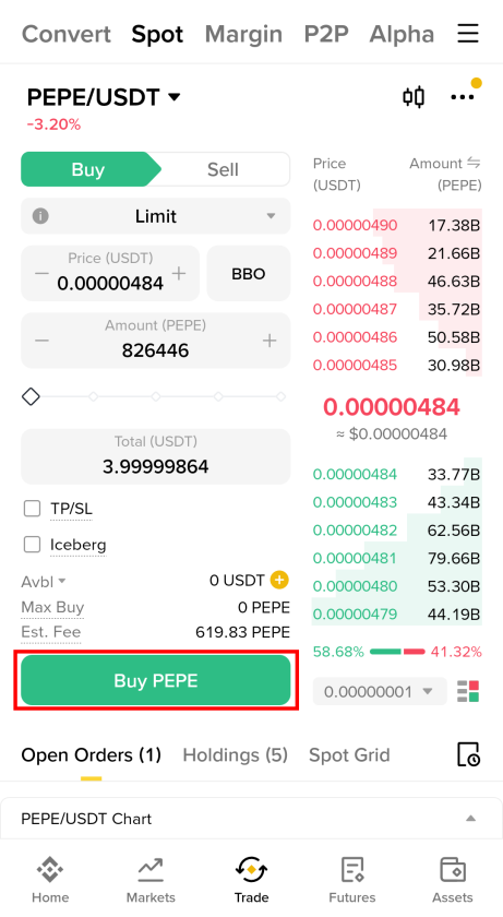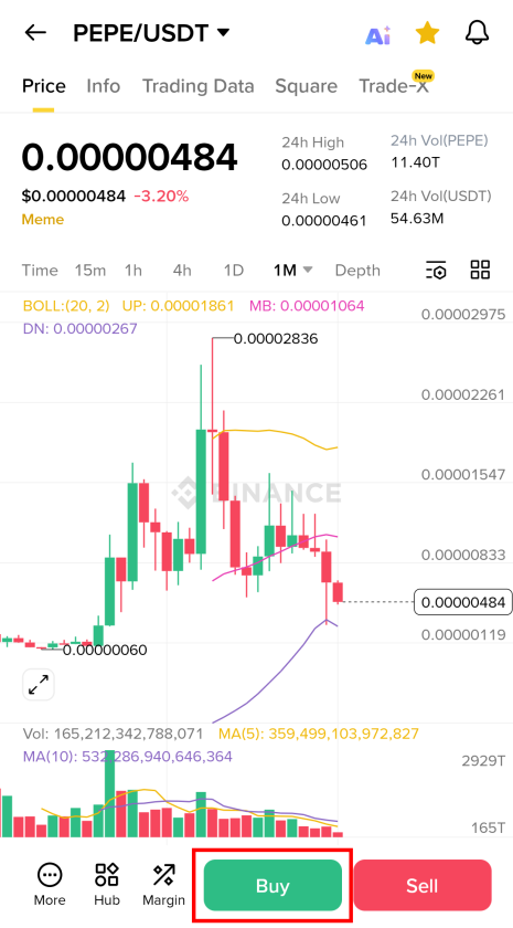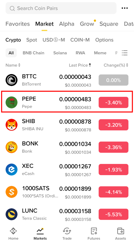 Since, we are trying to understand the crypto, first go on Market and see which crypto you want to buy. Right now, I am going with PEPE.