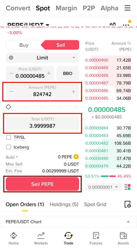 You can either enter the amount of coin you want to buy or the cost of which you want to buy. After entering that, tap on Sell.
