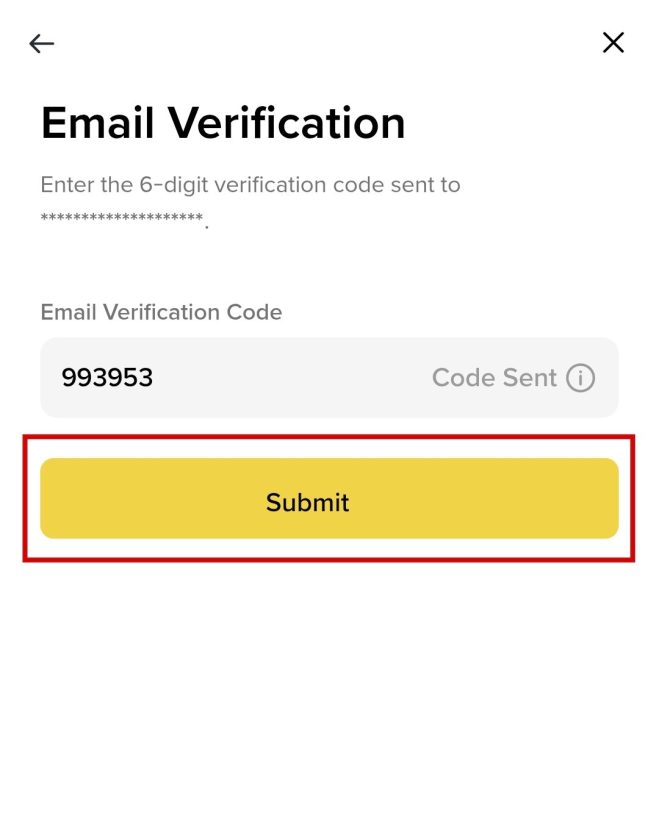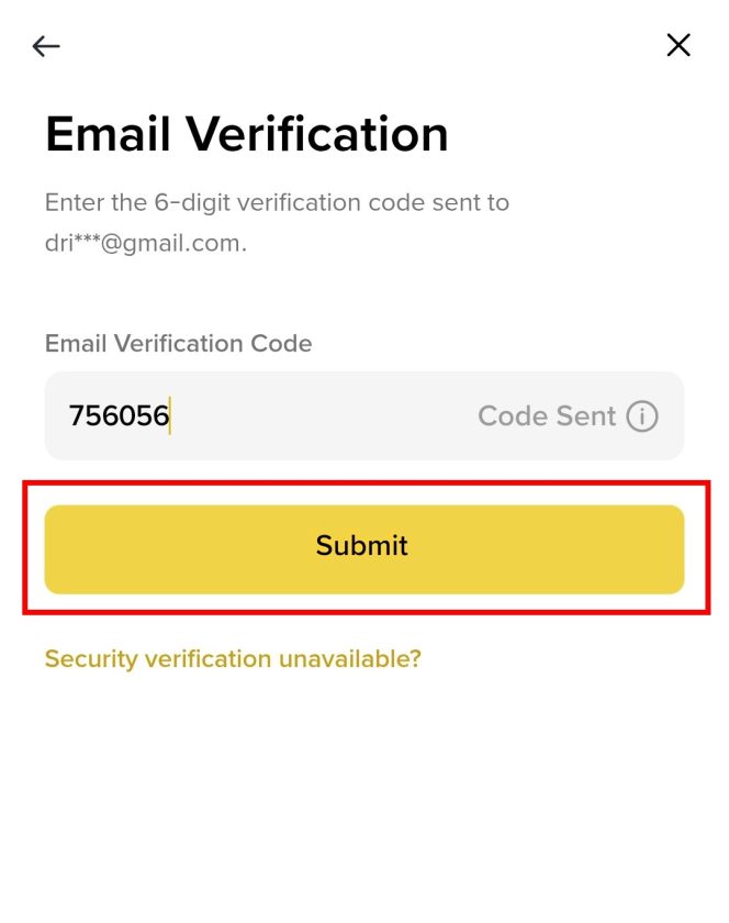 Before your account is created, you’ll need to verify your email address. Check your mail, and enter the OTP sent by Binance.