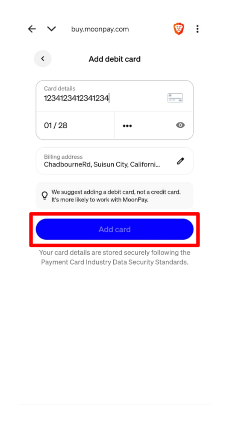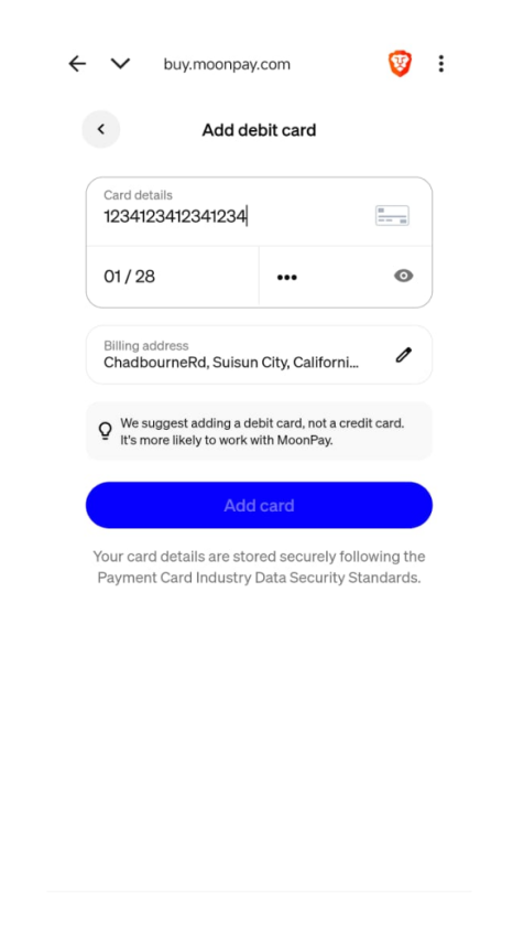 Note: Some banks may block crypto transactions. Ensure your card supports crypto purchases.